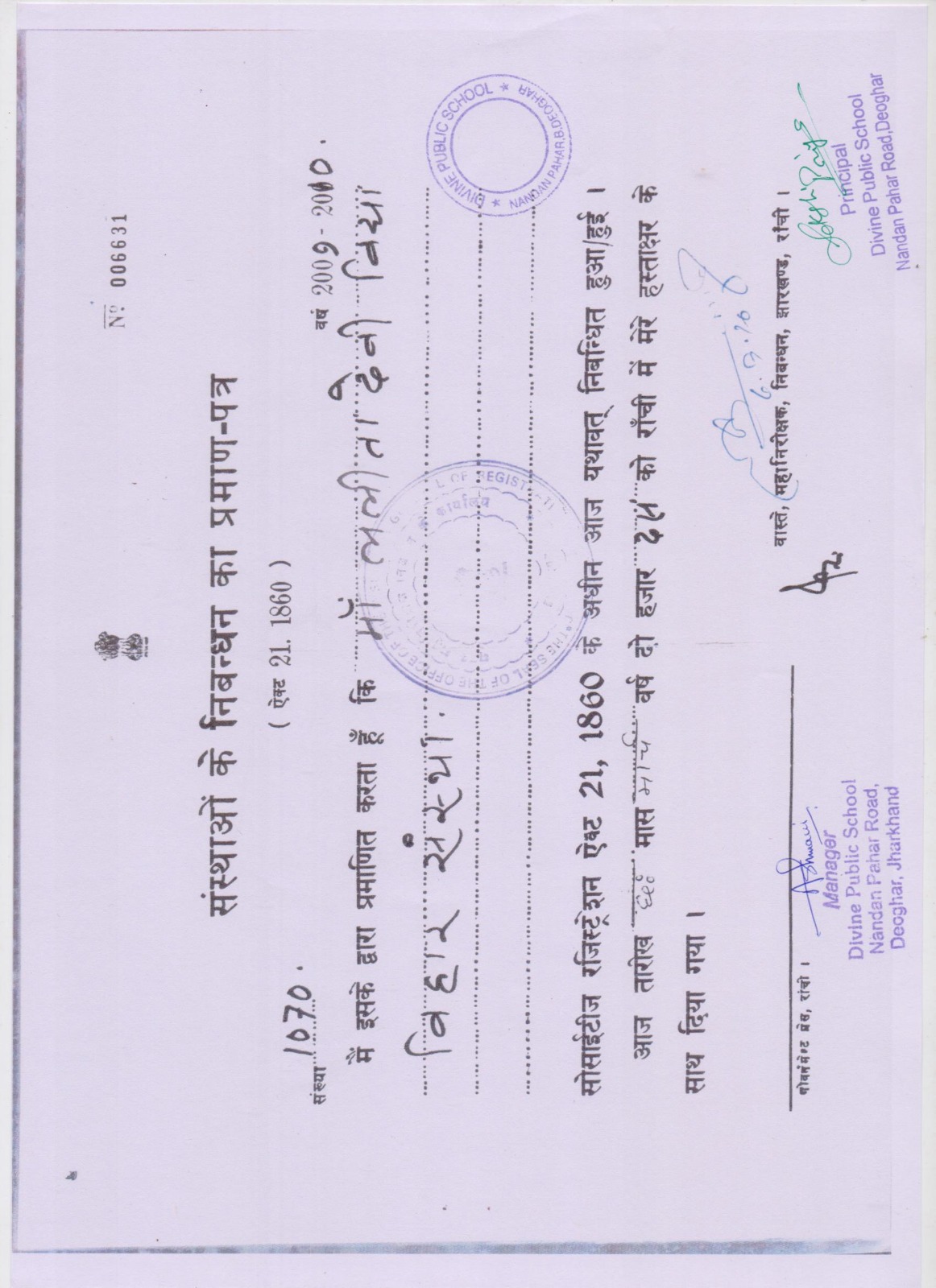 SOCIETY REGISTRATION CERTIFICATE